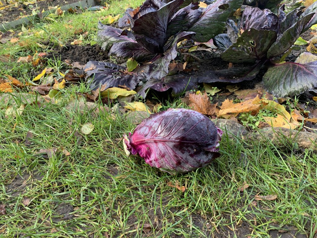 Der Rotkohl hatte die Größe und Form von einer etwas zu groß geratenen Aubergine und wurde ebenfalls eingefroren. Die anderen beiden Köpfe, die wir dreieinhalb Wochen später ernteten, wurden an die Großmutter verschenkt. Die restlichen Pflanzen haben es leider nicht geschafft.